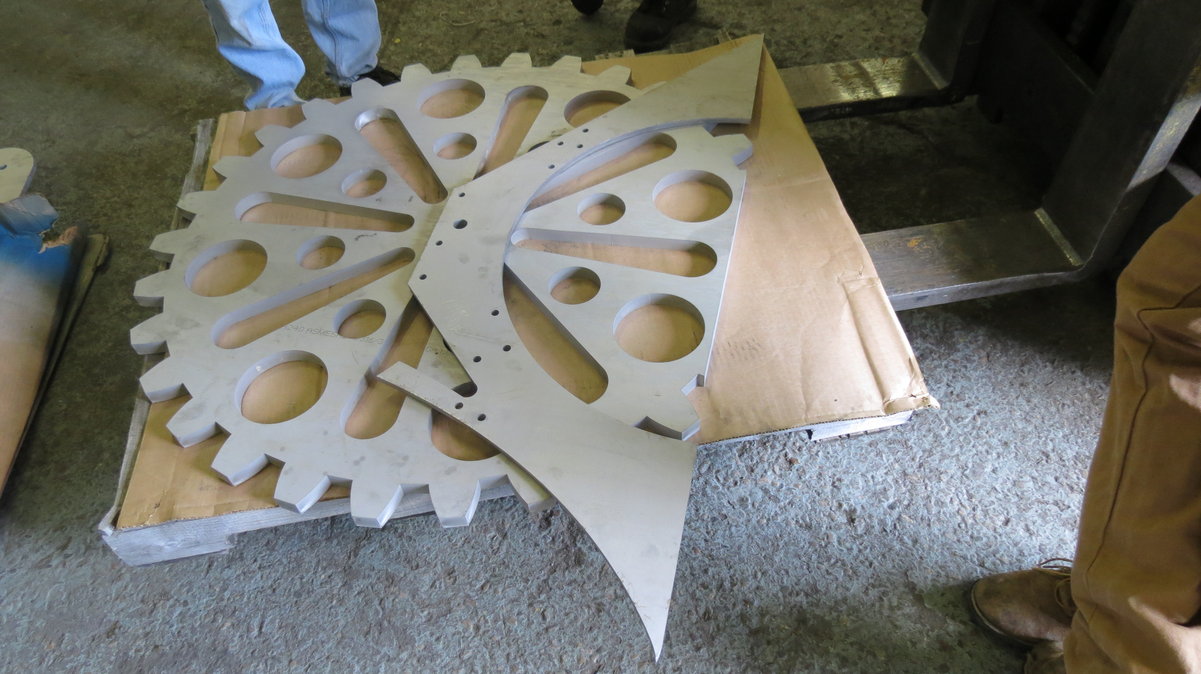 We are lucky to be working with a Stainless Steel welding expert at StephensMachine to get the base welded.The stability of the base is critical to the statue, and they have equipment beyond our basic welding equipment that gives us the desired result in both function and appearance. Before the final weld, the piece is placed and spot welded to position it well.